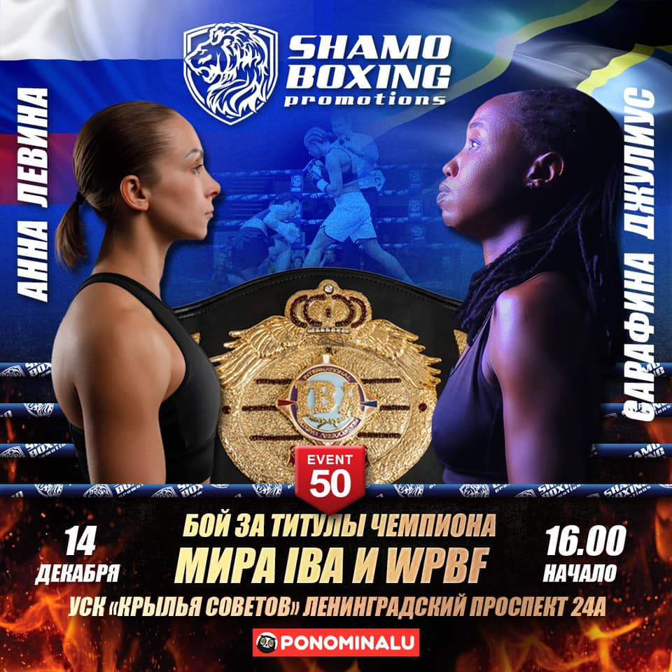 IBA WORLD CHAMPIONSHIP Women LEVINA ( Russia ??) vs JULIUS ( Tanzania ??) Saturday 14, December 2019 Korston Club, Moscow, Russia Commission Russian Boxing Federation Promoter Shamo Boxing – Shamir Petrossian